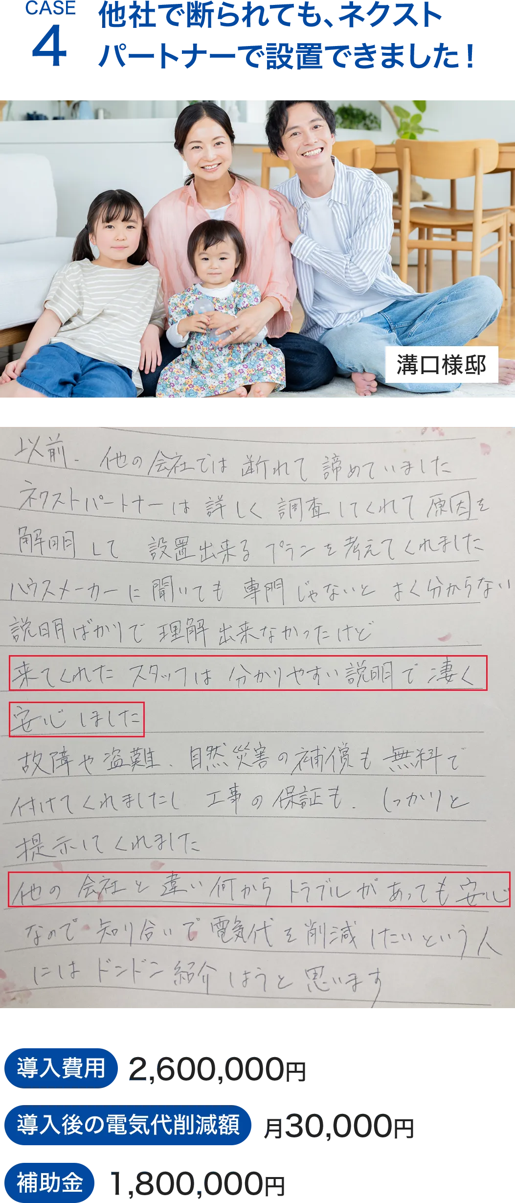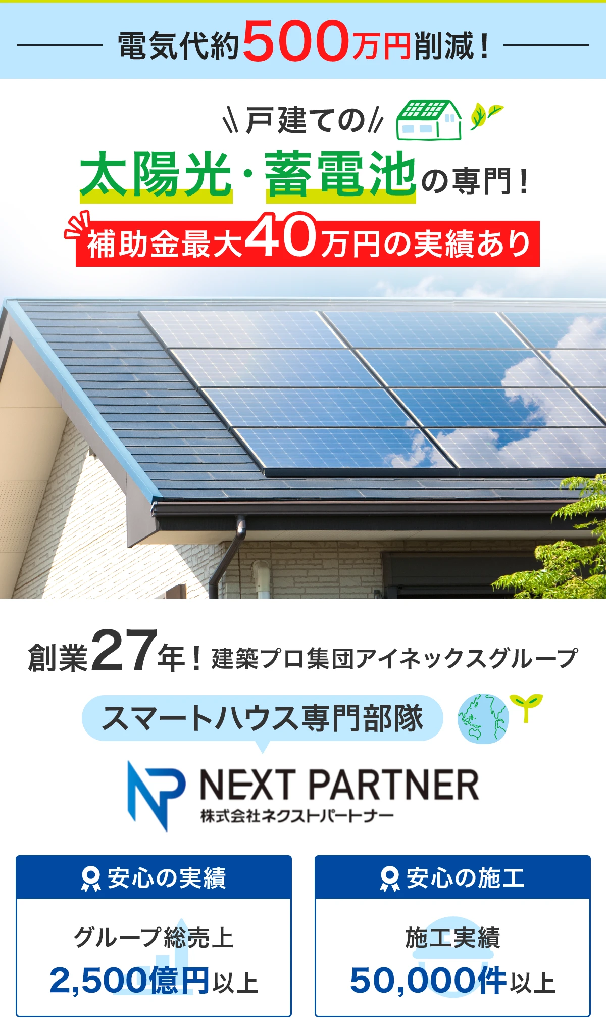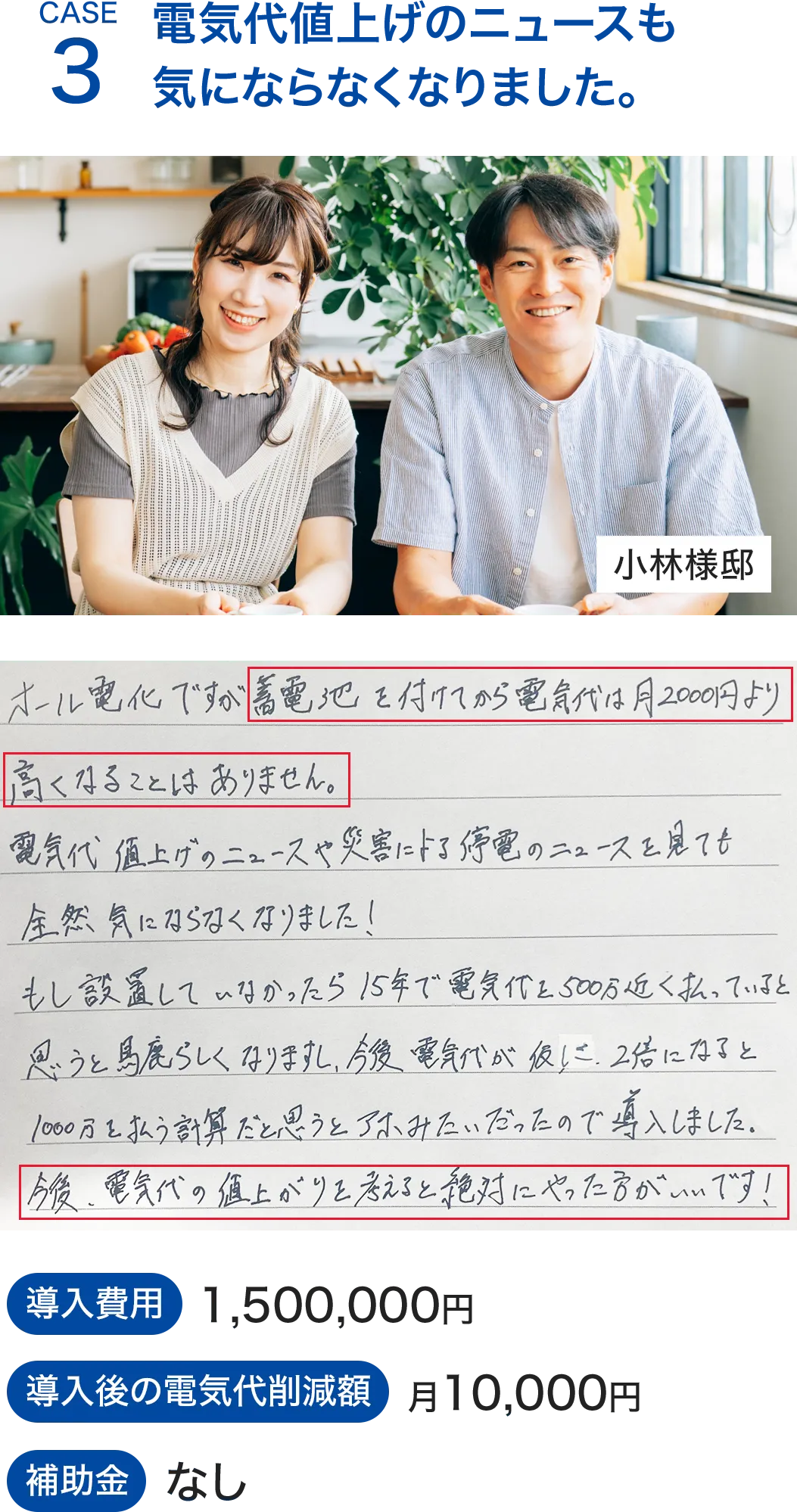 契約後1ヶ月程度で工事開始、工事自体は1日~2日で終わりますので最短で2ヵ月後には電気代が節約できたことが実感できます。